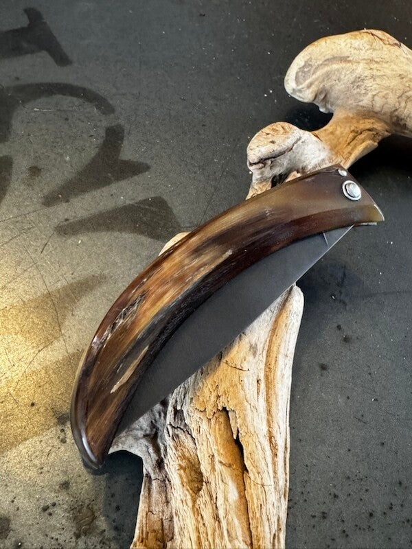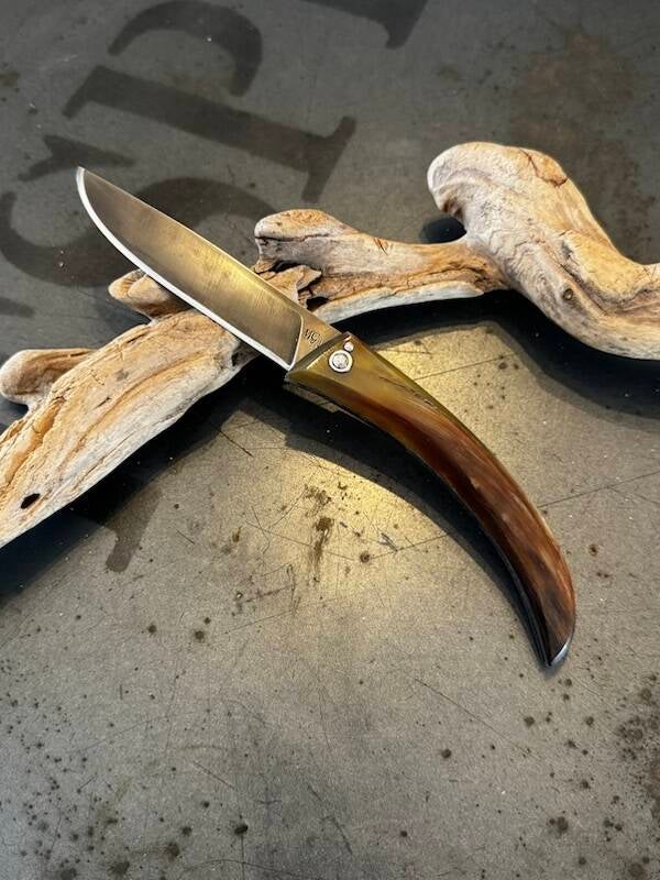 Superbe Curnichjolu en corne de vache et lame en acier inoxydable X50CRMOV15.